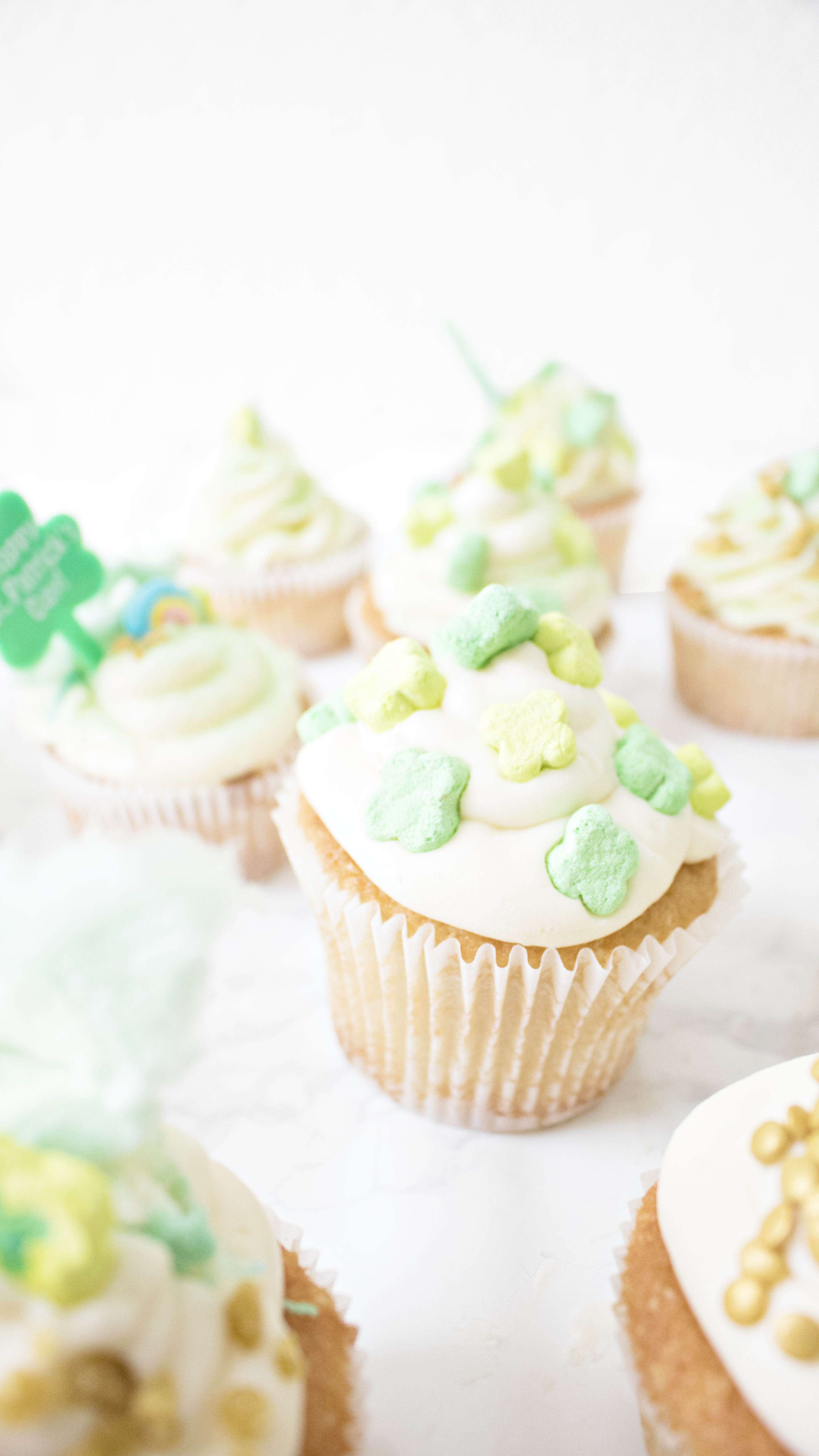 For the cupcake recipe head over to our post, St. Patrick’s Day Lucky Charm Cake Recipe. Baking time and temperature will be the same just don’t forget to test with a toothpick to make sure they are done!